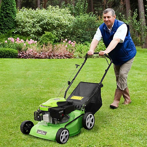 - Easy Storage – Folding handles make for easy storage while the rear grass discharge has a 45L grass collection bag for quick disposal of waste.