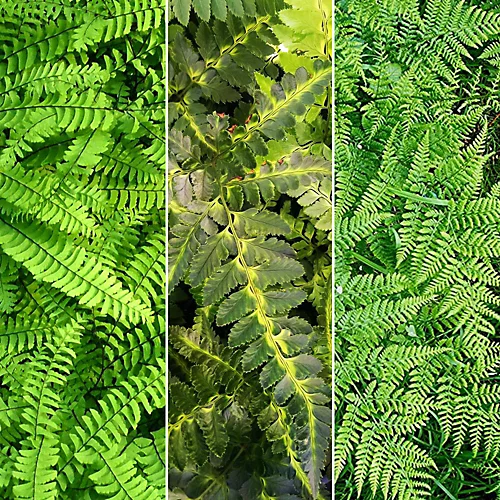 - A mix of various fern species