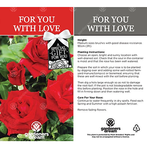 - A WONDERFUL, UNIQUE LIVING GIFT – A GardenersDream For You With Love Rose is a perfect gift to show/tell someone how much they mean to you.