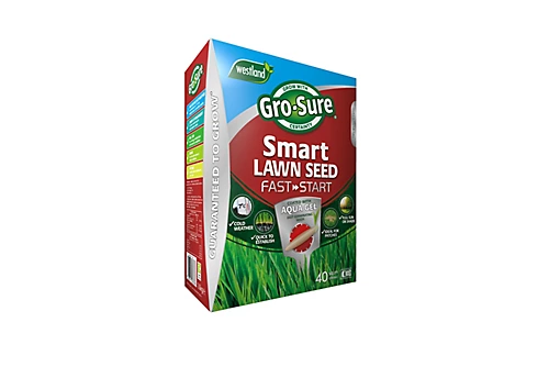 Gro-Sure Smart Lawn Seed Fast Start is a blend of Aqua gel coated and quick growing grass seed varieties for a quicker lawn establishment. The fast acting lawn seed germinates in colder weather, allowing earlier and extended sowing season