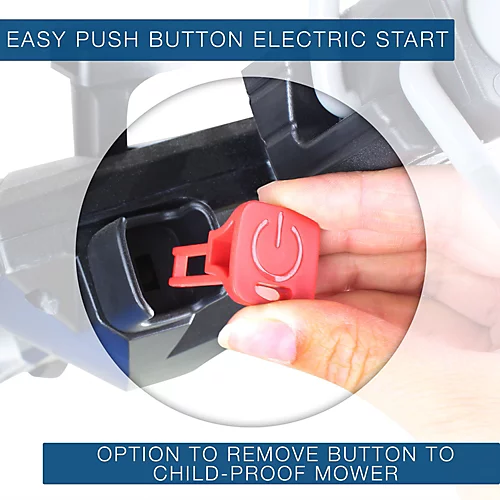 - Electric-start with recoil backup: Get started at the push of a button
