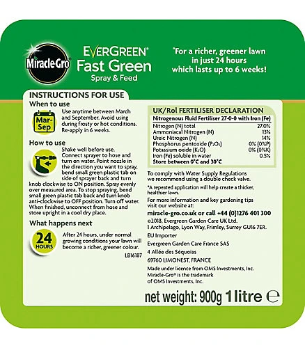 Keep your garden looking its best with this lawn feed from Evergreen. It will keep your grass looking lush by providing it with nutrients such as potassium to create a rich green, hardwearing lawn. Comes in a 1 litre spray bottle and covers 100 m².