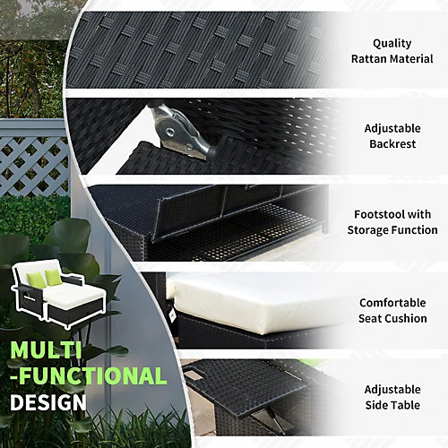 - TWO-PIECE SET: The garden daybed is formed of the sofa and footstool – use together or separately. Hinged sides as a handy side tray. Sofa features adjustable back.