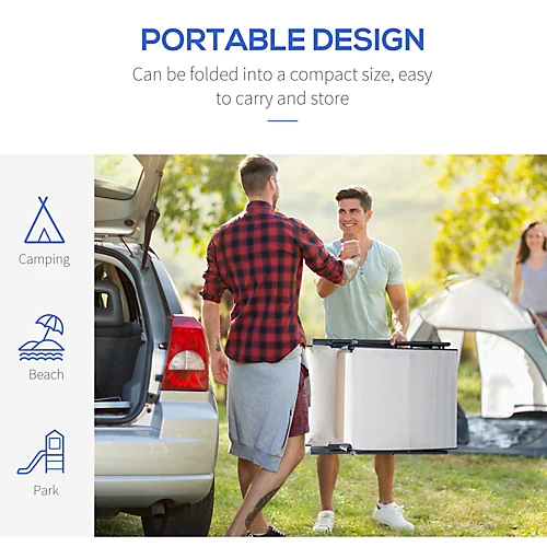 - • Item Name: Sun Lounge • Brand Name: Outsunny • Material Used: Steel, texteline • Colour: Cream white • Other Colours: Silver • Dimension: 137L x 63.5W x 100.5H cm • Weight Capacity: 165kg • Gross Weight: 10.4kg • Net Weight: 8.3kg • Assembly Required: NO • Other Key Info: Pillow Size: 43L x 18W x 5T cm Foldable Size: 81.5L x 20.5W x 64.5H cm