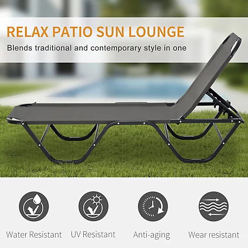 The simple and easy way to relax outdoors – grab this minimalistic Outsunny garden lounger. Using aluminium for a frame which is tough – powder coated for extra strength – you are able to relax with full support the four stump legs keep you balanced. The back is adjustable to five different positions, you are able to lie back to an angle you find most comfortable. The fabric seat is soft and smooth on the skin, making your time under the sun as enjoyable as ever before.