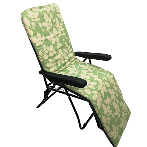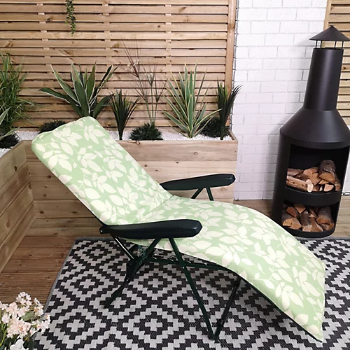 - This lounger recliner has a thick Green padded cushion with a leaf design for maximum comfort and can be removed when not in use.
