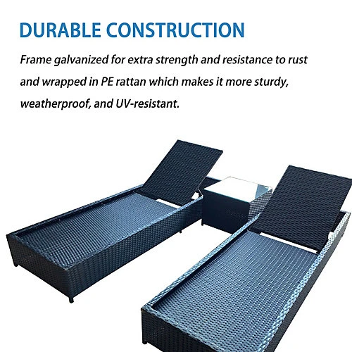 - Quality Construction — The sun lounger and coffee table are constructed from PE Rattan over an aluminum alloy steel frame, and will last longer and be more heat and weather resistant than similar wicker furniture.