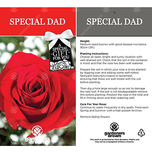- A WONDERFUL, UNIQUE LIVING GIFT – A GardenersDream Special Dad Rose makes an excellent gift be it Father’s Day or just a simple thank you, say it with a supply of gorgeous red roses.