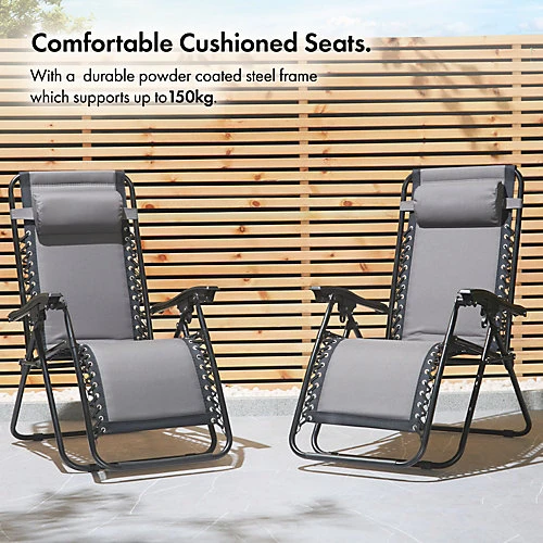 Ready for the most comfortable lounging experience of your life? Meet the padded reclining zero gravity chair from VonHaus. Designed to fit in with most types of outdoor or patio chairs, this deluxe reclining garden chair couldn’t be more comfortable. Built to last – the sturdy powder-coated steel frame is covered with a durable and hardwearing textoline padded fabric in classic grey.