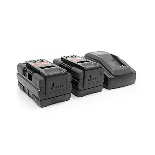 - Comes with 2 x 4ah Battery, Charger & Side discharge shoot